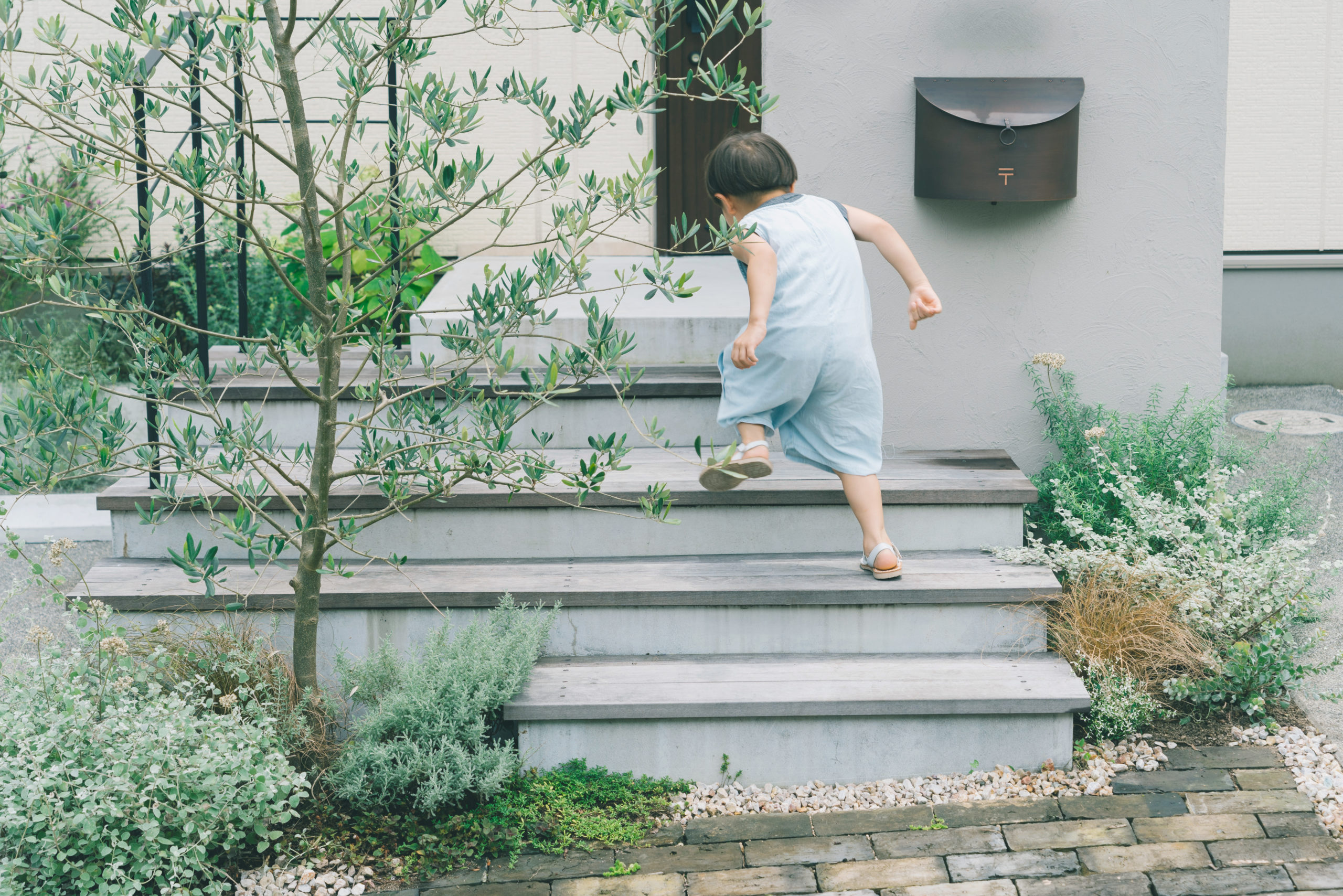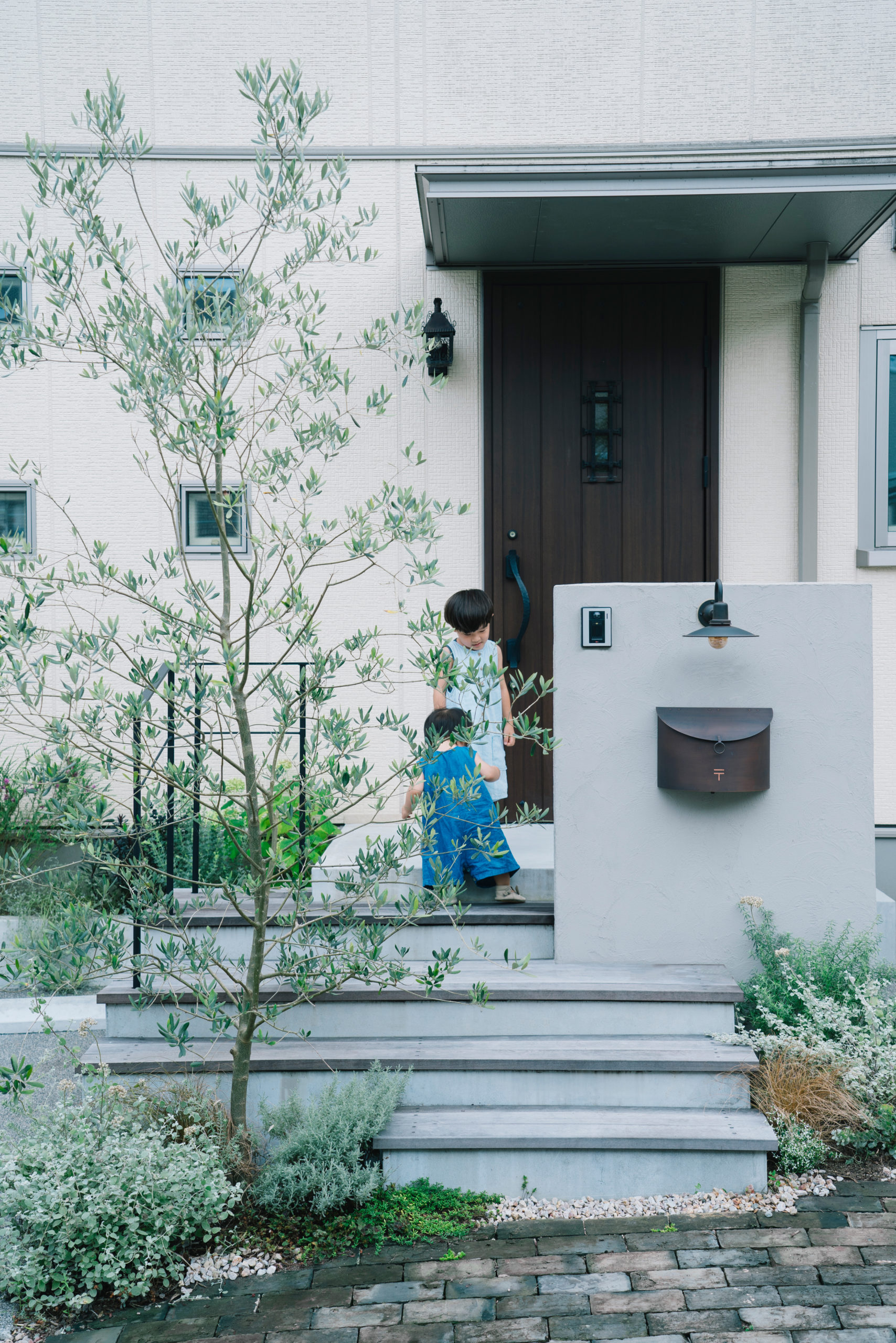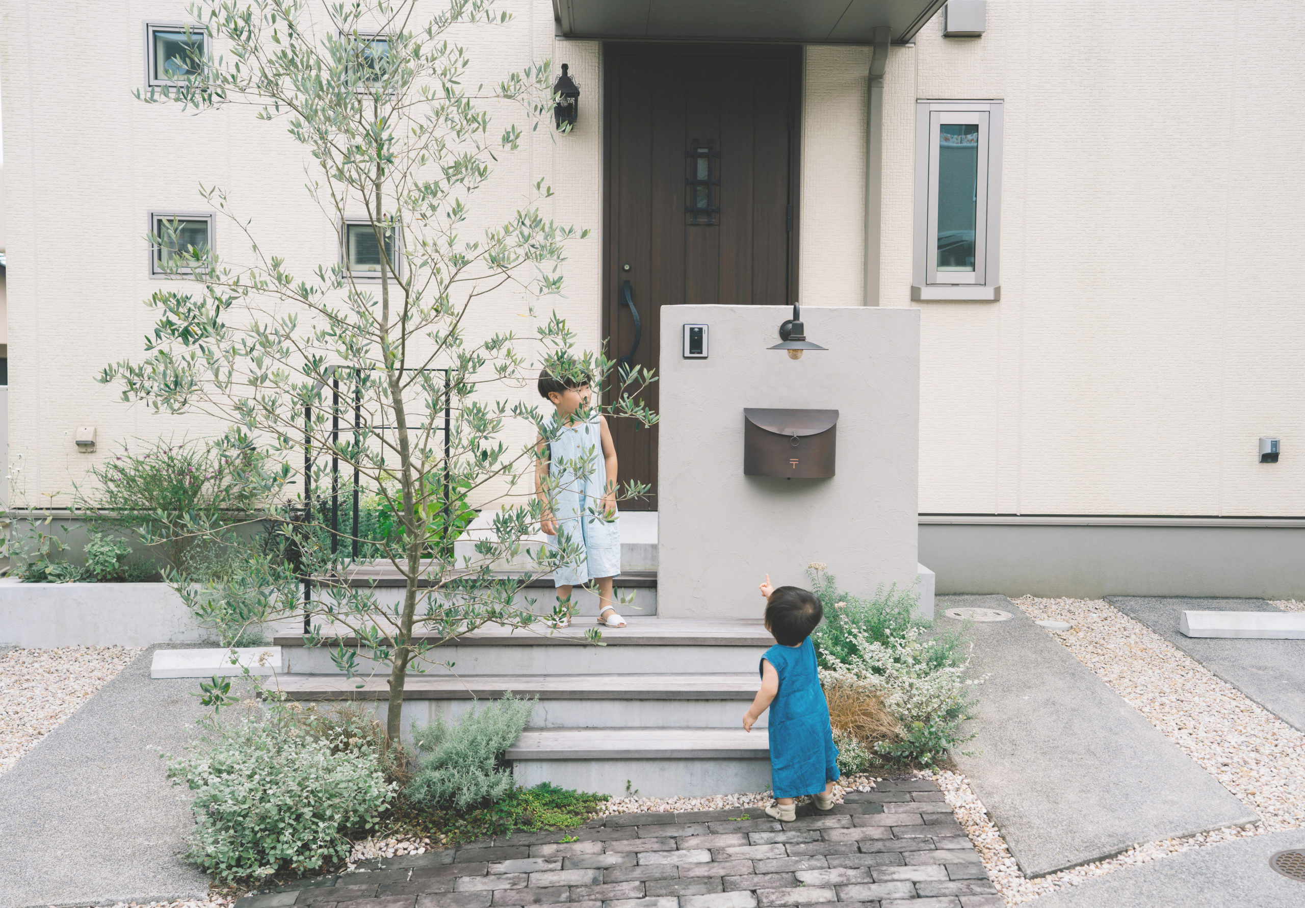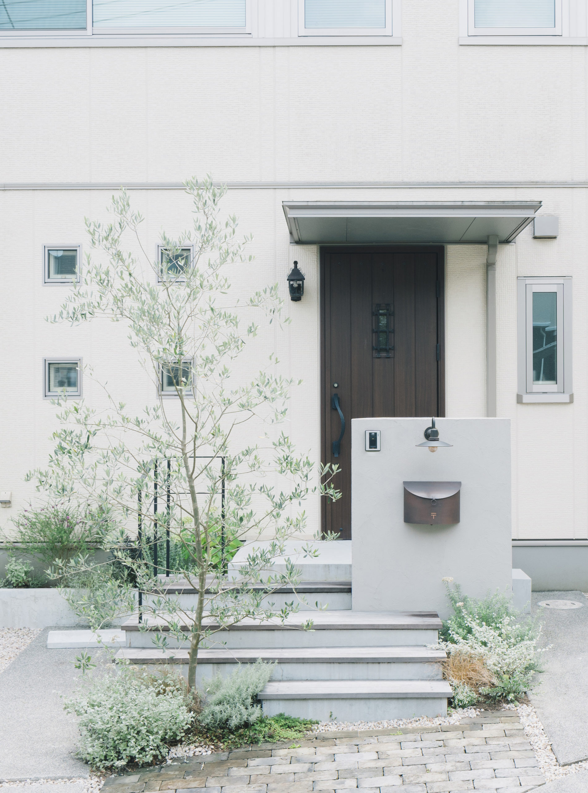 広島県東広島市にある住宅。新築から5年ほどのタイミングでエントランスやアプローチの大掛かりなリノベーションを行なった。新築と同時に施工されていた外構は、建物の打ち合わせが忙しい新築時には、十分に外構のデザインを考える時間もないままだったという。時間が経つにつれ、当時はきれいだった芝生や植物も年々手入れも難しくなったころ、毎日を過ごす住まいにも、もっとご自身のライフスタイルや好みを取り入れて暮らしを充実させたいと、暮らしを楽しまれ、住まいのデザインにも関心の高い施主様の想いが募り、ゾーニングや導線から大きく見直すこととし、大胆な外構リノベーションとなった。