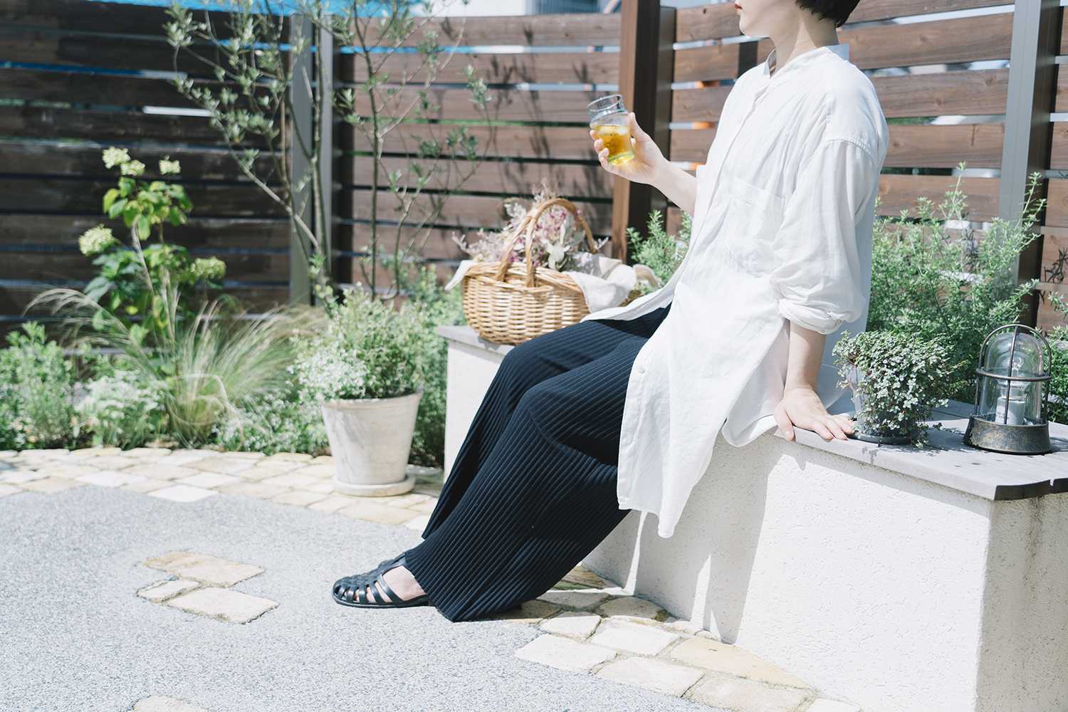 つい窓を開けたくなる、外に出たくなるような開放感を感じる暮らし。フラットに室内とつながる広々としたデッキ空間で外の空気に触れたり、植物を身近に感じるテラスがその先に広がり、庭という空間がリノベーションによって暮らしの一部となっている。